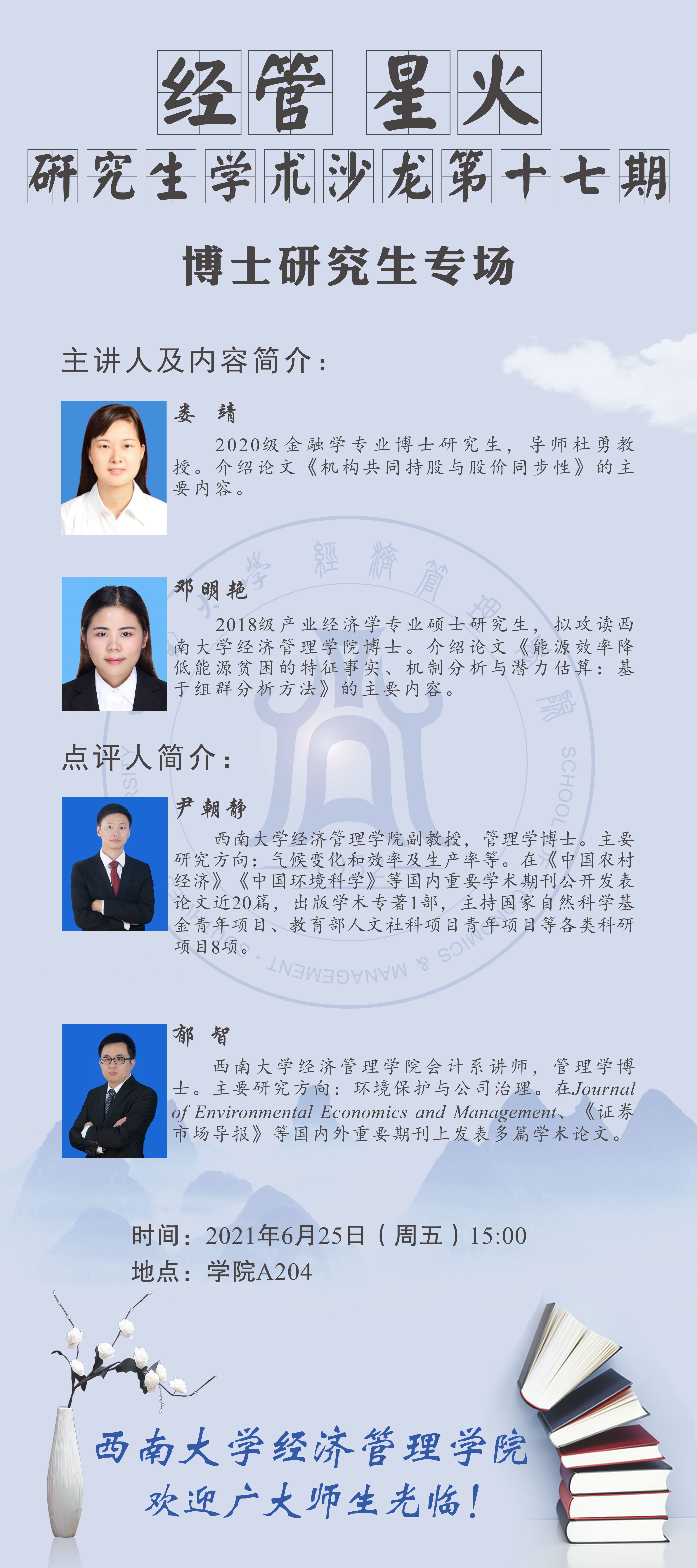 6月25日研究生学术沙龙预告