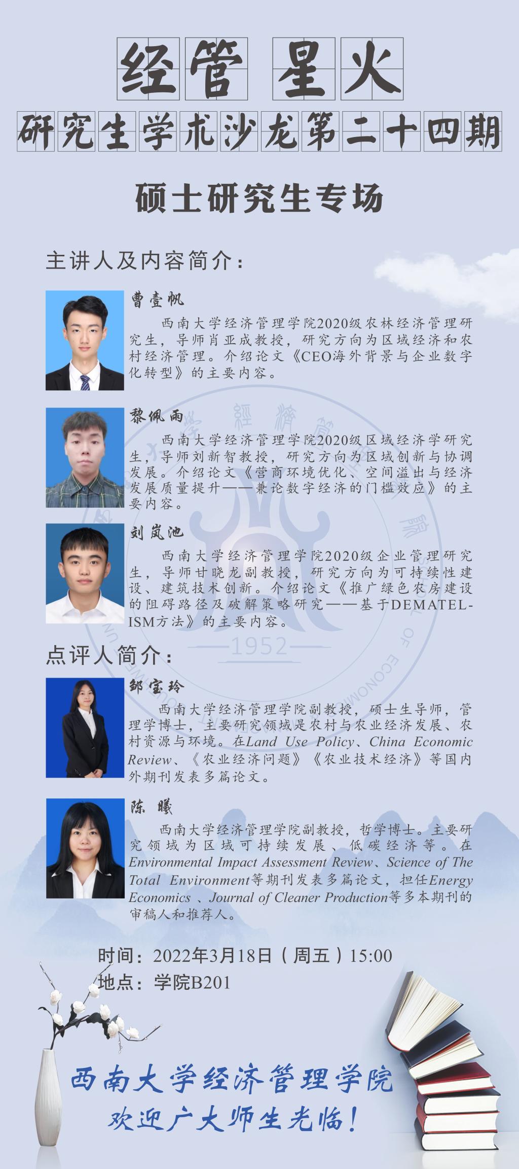 3月18日研究生学术沙龙预告