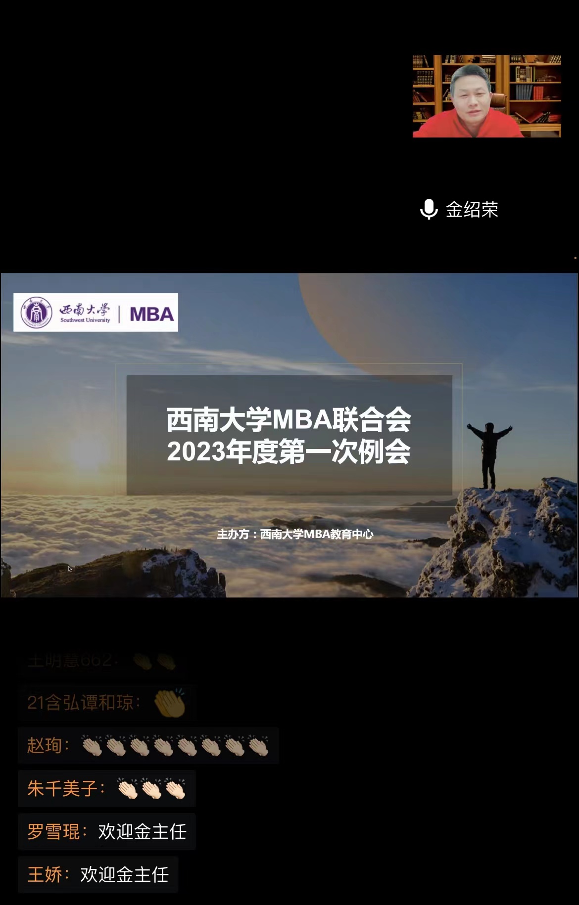 3月15日,304永利集团MBA第十一届联合会第一次例会在线上顺利召开,MBA教育中心执行主任金绍荣、李若男老师和第十一届联合会全体成员出席了本次会议。