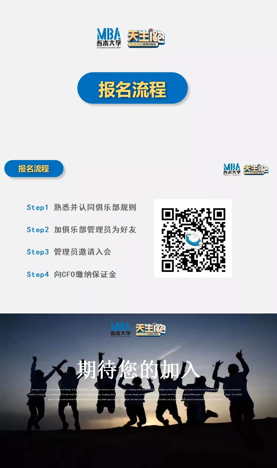 304永利集团MBA天生i跑俱乐部(以下简称“俱乐部”)聚集了一群热爱运动的MBAer。在工作中,他们是各行各业的精英,在生活中,他们是家庭的顶梁柱,在俱乐部,他们是彼此的至交好友。他们有着参与运动的极大热情,被称为“西大体育生”,也具有强烈的集体荣誉感和社会责任感。自俱乐部成立以来,他们在各类比赛中取得了优异的成绩,2021年在第十届亚太地区商公司沙漠挑战赛中捧回最高荣誉“沙鸥奖”,为母校增光添彩。
