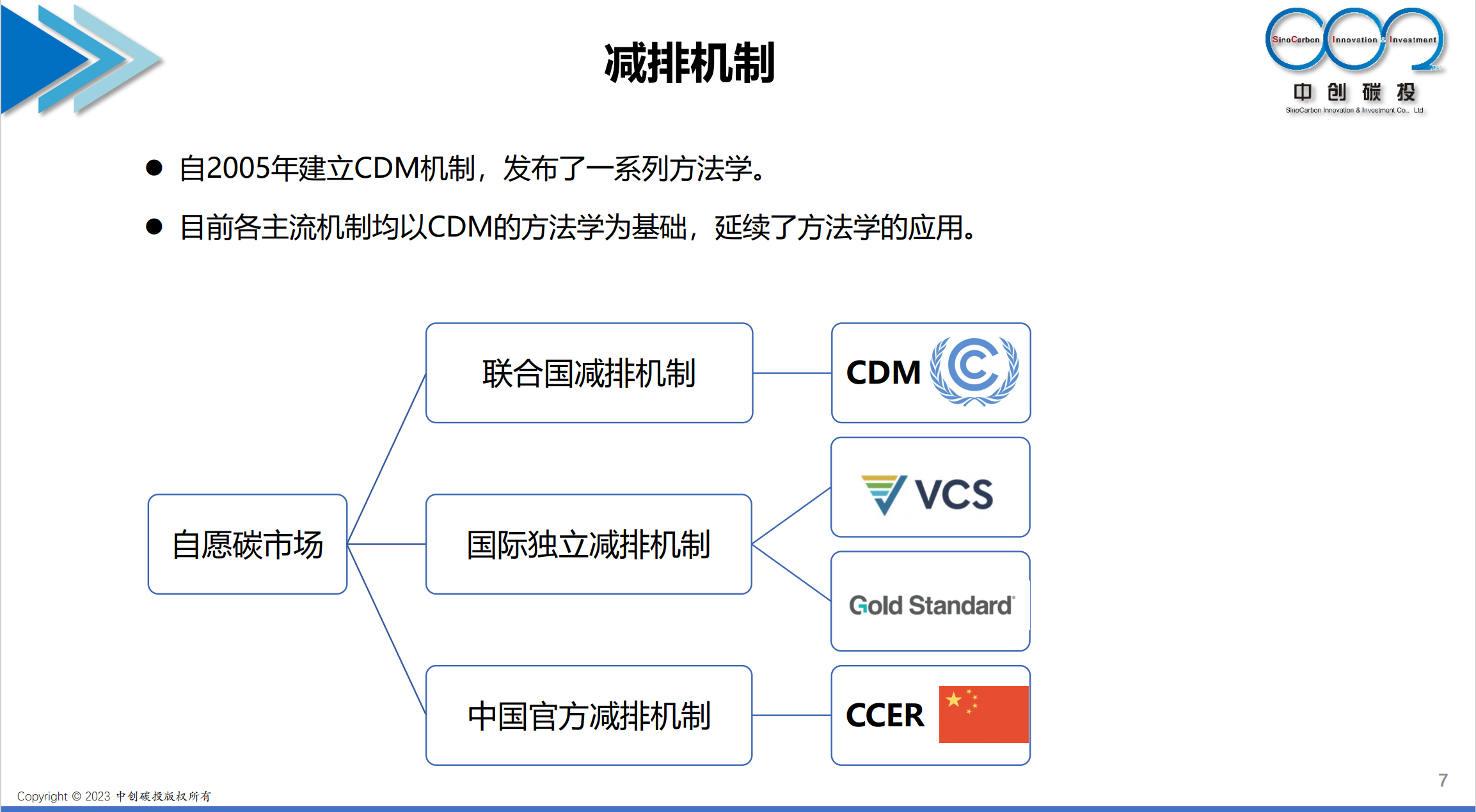 在进一步介绍减排机制时,中国试点碳市场开始之前,是通过联合国减排机制的CDM项目参与到其中的。同时,国际独立减排机制VCS和黄金标准也给我国提供了不少经验,目前在国内比较火的是中国官方减排机制CCER。