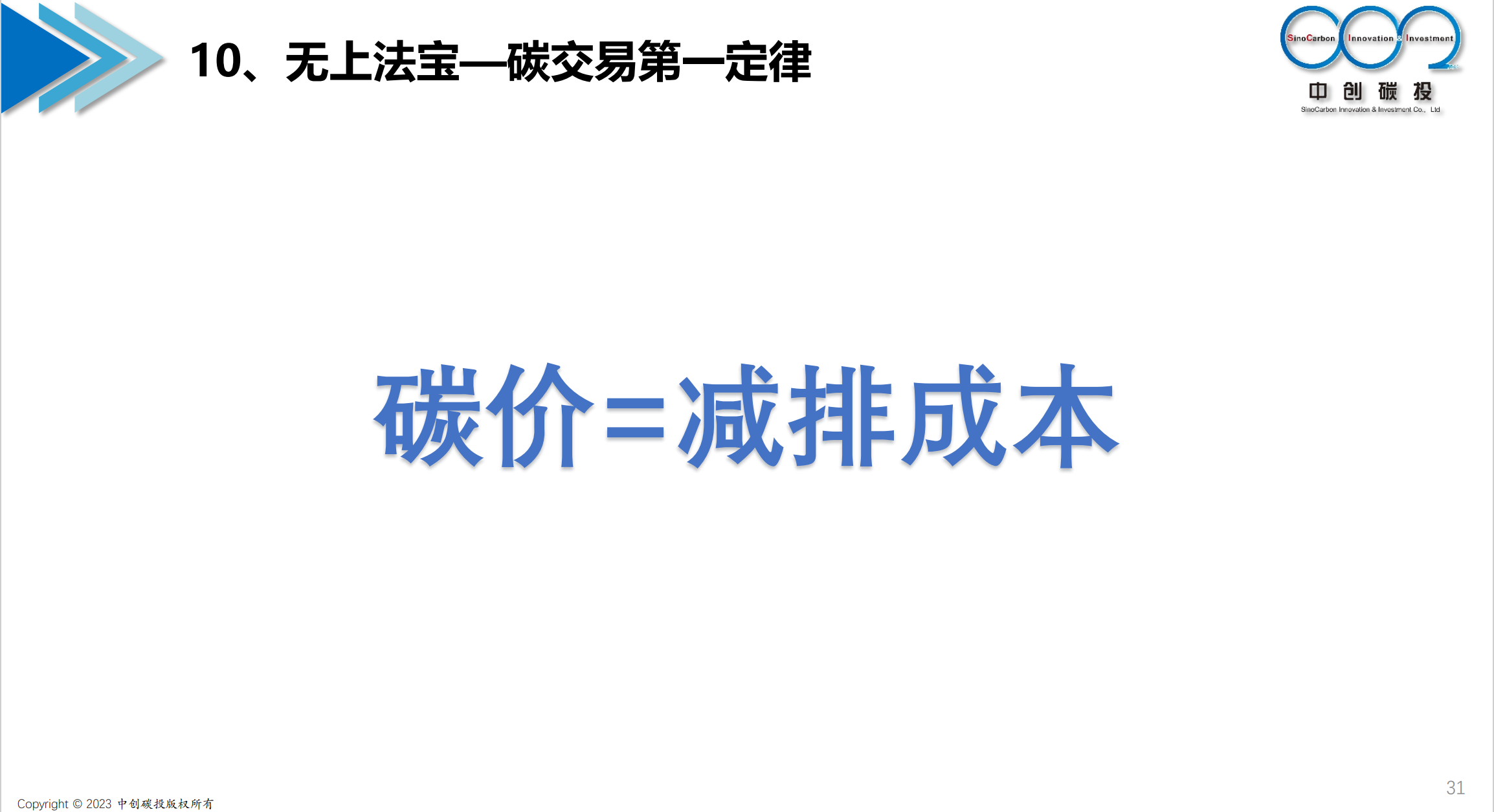 最后,周老师抖出了埋得最深的包袱“碳交易第一黄金定律”:碳价=减排成本。