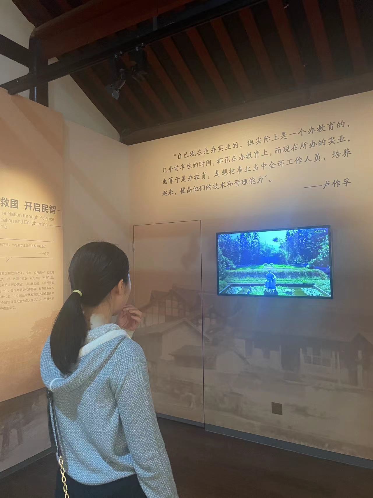 这一次,当含弘班的同学来到卢作孚纪念馆——也是卢作孚先生曾经工作的地方,他们通过图片、实物、文字、影像等载体,详细了解了卢作孚先生的一生,尤其是他投身革命救国、实业救国、教育救国、科技救国与乡村建设的光辉事迹。同学们深刻感受到卢作孚先生富强国家、民生为本的爱国情怀,公而忘私、服务社会的高尚品德,大胆创造、追求卓越的创新精神,这正是新时代新商科学子应该弘扬的、学习的、传承的精神。