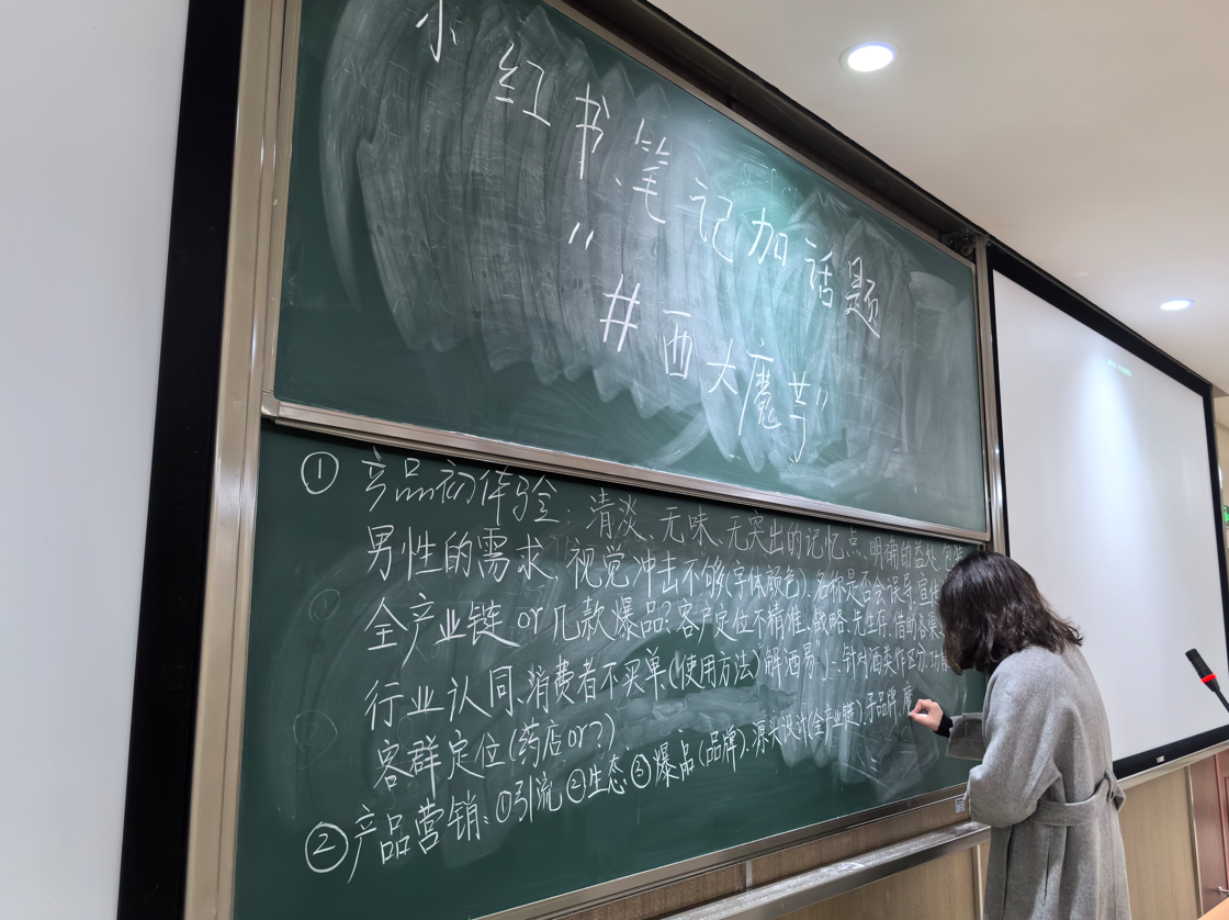 魔力大开的讨论环节,学员们围绕产品系列、价格、定位、包装、品牌等展开,问题明确、观点犀利,建言有益。比如,“酒易”这个产品价格具有竞争力,但是易拉罐的包装盒颜色深,把成分构成、如何引用、产品认证等关键信息掩盖了;再则,这个产品名称可以改改看,比如“解酒易”,消费者就非常容易理解了。关于价格,学员们对比了下,魔芋包点类产品是同类产品的2-3倍,但又没有突出魔芋类产品低糖零脂的特点,所以消费者买单意愿不强;在渠道建设上,学员发现西大魔芋主要通过商超、火锅店等B端渠道推广,但对消费者C端的引导不够,不知道为何要买单。线上渠道,小红书上主要是拍图上传,缺乏用户深度体验,学员建议与健身博主联合,开展“魔芋+ ”系列的讨论,教会消费者懂得产品,喜欢产品,以至形成习惯性消费。关于品牌,这是公司目前最大的困扰,西大魔芋的品牌是几代西大人智慧汗水的结晶,学术影响力在全国最高,但这一技术赋能型高校品牌推广却并没有被市场接纳。学员们提议,就魔芋植物特性的“降糖、解酒、低卡、饱腹”功能,收缩产品线,重塑品牌。可以将304永利集团作为技术支持方,建立合作联盟,采用“ 母-子”品牌策略,建立西大魔芋为母品牌,“小魔女”“魔兽出笼”“魔性出道”等为子品牌,瞄准客群价值诉求,采用“对比定价法”“撇脂定价法”“声望定价法”等精准营销策略。也有学员提出,临近春节,可以就“酒易”产品作为爆品引流,进而引导C端消费者认识魔芋,体验魔芋,接受魔芋系。让小魔芋产品从大校园走线大市场,重塑魔芋品牌。