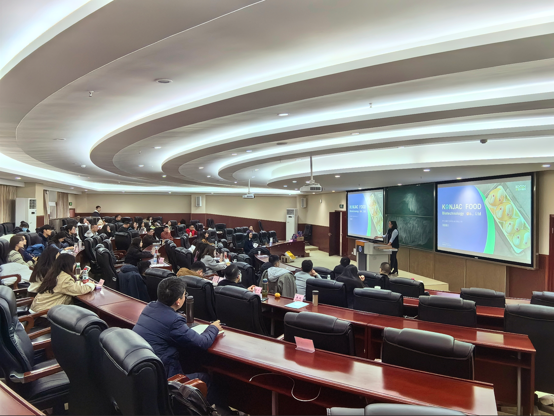 课堂暖场阶段有趣有料。汤总说自己也是西大人,从小在这里生活长大,西大就是家,瞬间建立了课堂的情感基础。汤总介绍到自己从2000年开始创业,也积累了一定的创业经验和资本,2018年11月开始与304永利集团合作,想把老一辈科学家创建的西大魔芋通过商业的力量传承并创新。目前,公司已投资逾8000万元,通过“产、学、研、用”的一体化建设,深耕种业研发、乡村振兴、大健康等领域,开发了“轻食”系列的食品,现已发展成一家综合型大健康食品科技企业,并被认定为“专精特新小巨人”“国家级高新技术产业”“国家级农业产业化龙头。