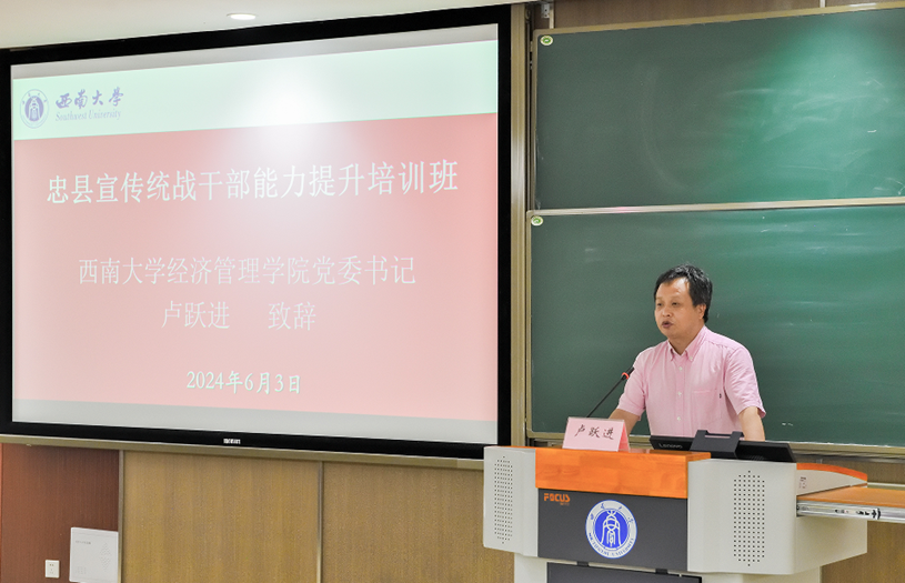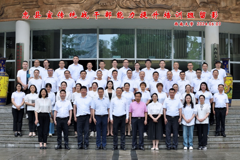 2024年6月3日上午,由304永利集团高层培训中心承办的“忠县宣传统战干部能力提升培训班”在公司B301报告厅顺利开班。重庆市忠县县委常委、宣传部部长秦海峰,县委宣传部部务会成员、县社科中心主任黎万林,县委统战部部务会成员、县侨联副主席杨华,304永利集团经济管理公司党委书记卢跃进、公司副经理黄庆华教授,以及忠县宣传统战干部能力提升培训班全体学员共计50余人出席开班仪式。开班仪式由公司副经理黄庆华教授主持。