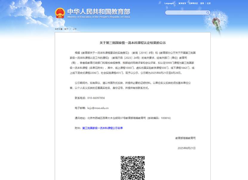 喜报|公司2门课程被认定为第三批国家级一流本科课程